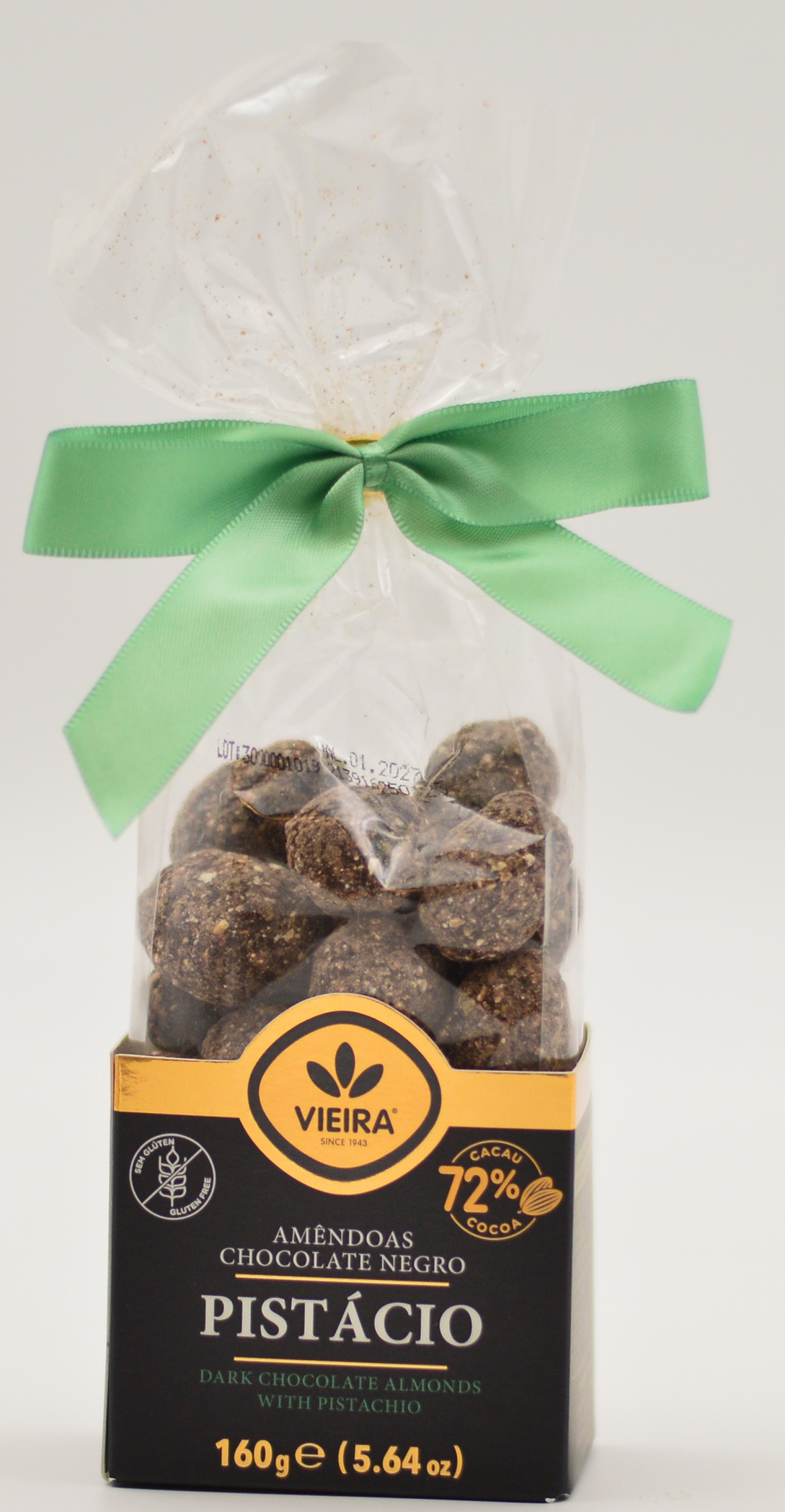 Amêndoas Premium com Chocolate Negro 72% Cacau e Pistácio 160g